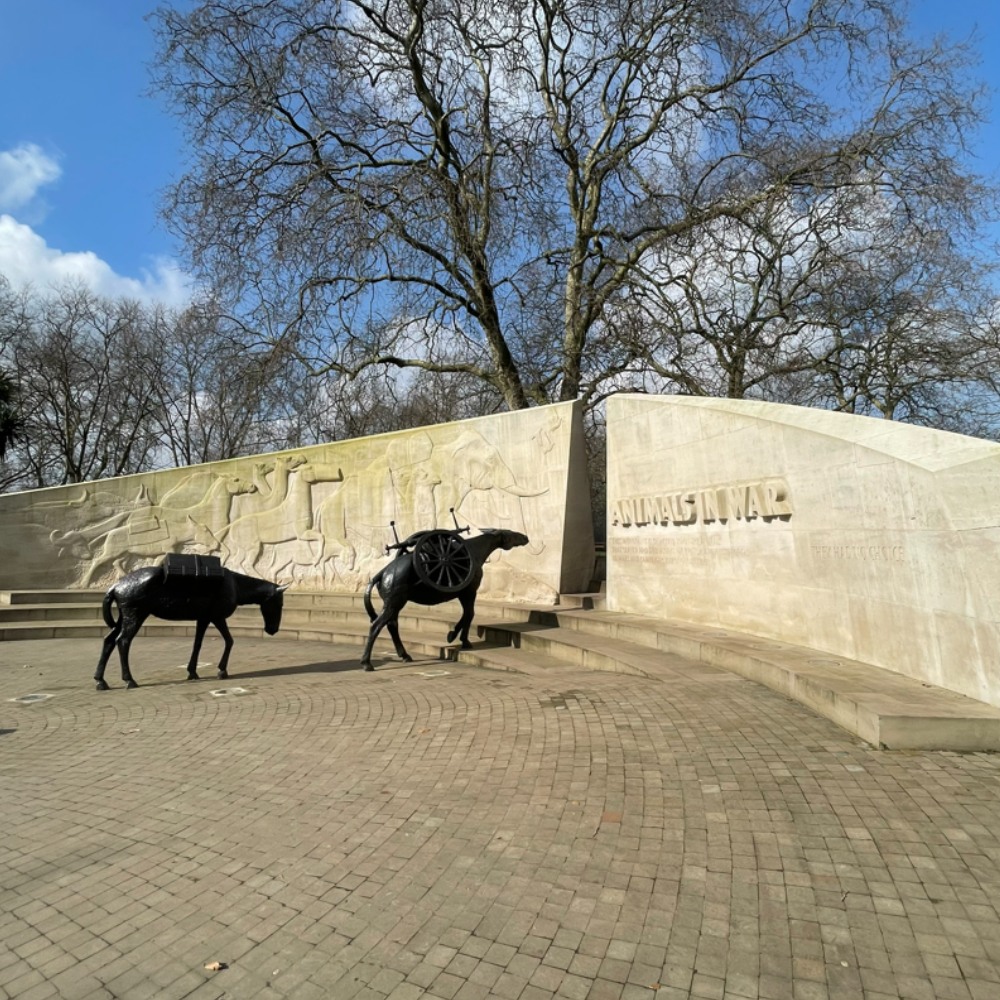 Shortly before the unveiling of the Women’s memorial, another was placed in Park Lane beside Hyde Park, honouring another group of irregular members of the war effort – the animals who have fought alongside men and women in every armed conflict going back thousands of years.